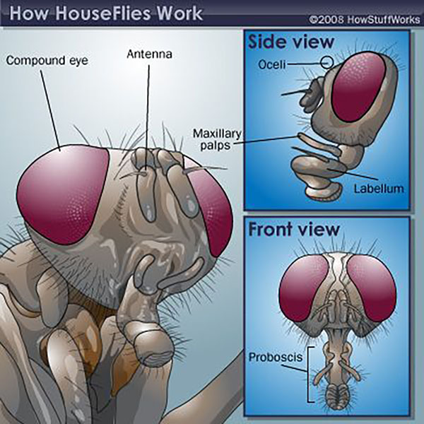 Seekor lalat rumah mendasarkan indra navigasinya pada arah datangnya sinar matahari. Beberapa ahli entomologi mengatakan, ketika mata yang kompleks dan sensitif ini mengalami pembiasan cahaya, serangga, termasuk lalat, menjadi bingung dan terbang menjauh.
