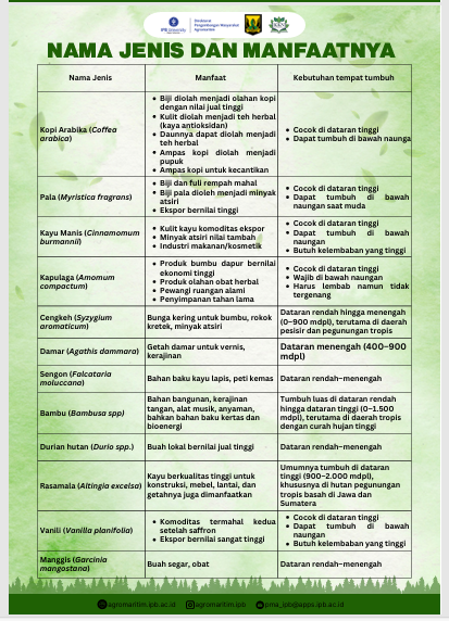- Mengenalkan jenis tanaman bernilai ekonomi tinggi dan sesuai dengan kondisi lokal.