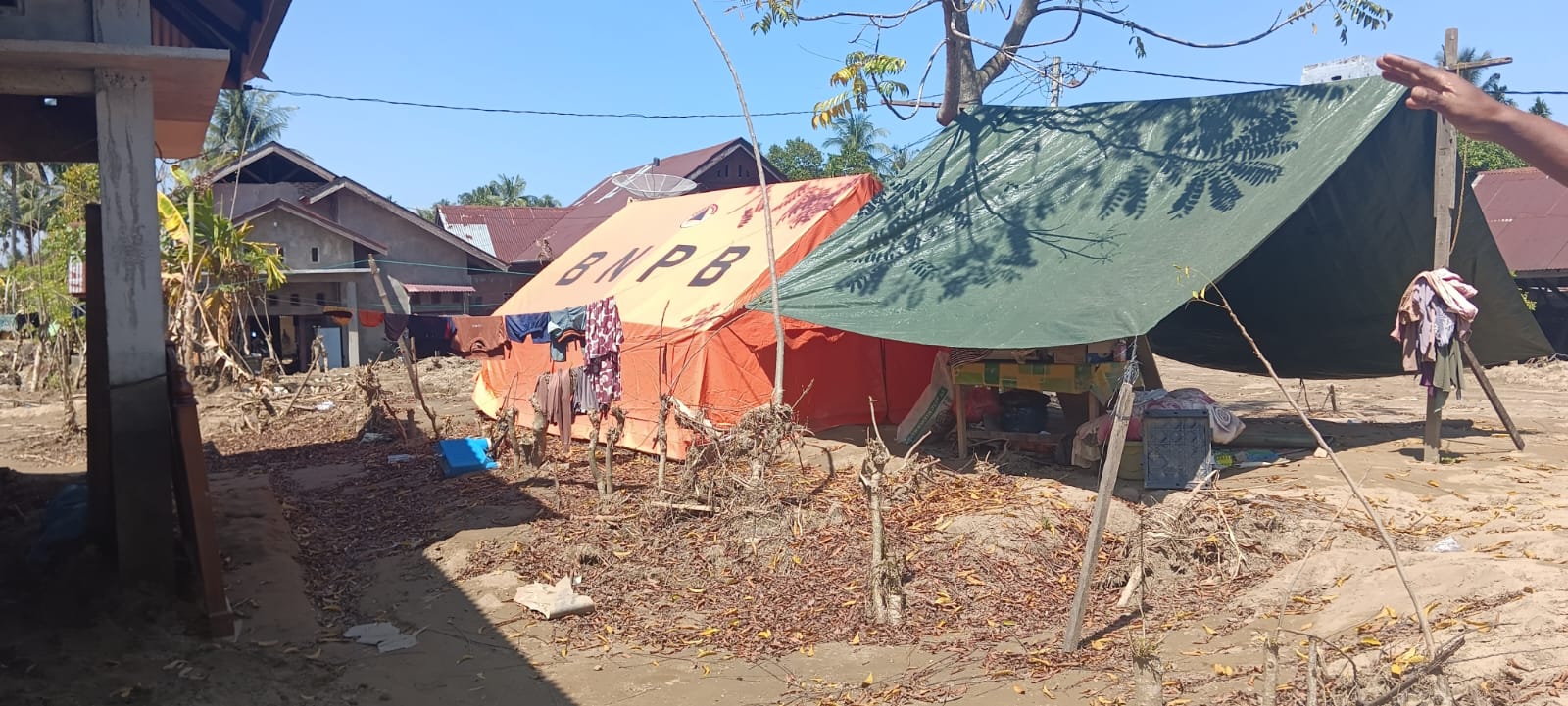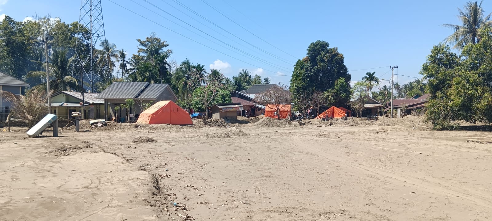 Di pinggir jalan utama di Pidie Jaya, yakni Jalan Banda Aceh–Medan, bangunan rusak dan tenda darurat masih terlihat di sejumlah titik. Di dalam perkampungan warga, masih banyak pula rumah yang terbenam lumpur sisa banjir dengan ketinggian mencapai atap.