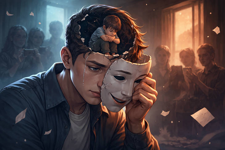Yang tampak kuat di luar, rapuh di dalam. Kepercayaan diri menjadi defensif. Ketika topeng runtuh, muncul kecemasan eksistensial yang dalam. Inilah krisis identitas modern yang sering tidak terlihat.