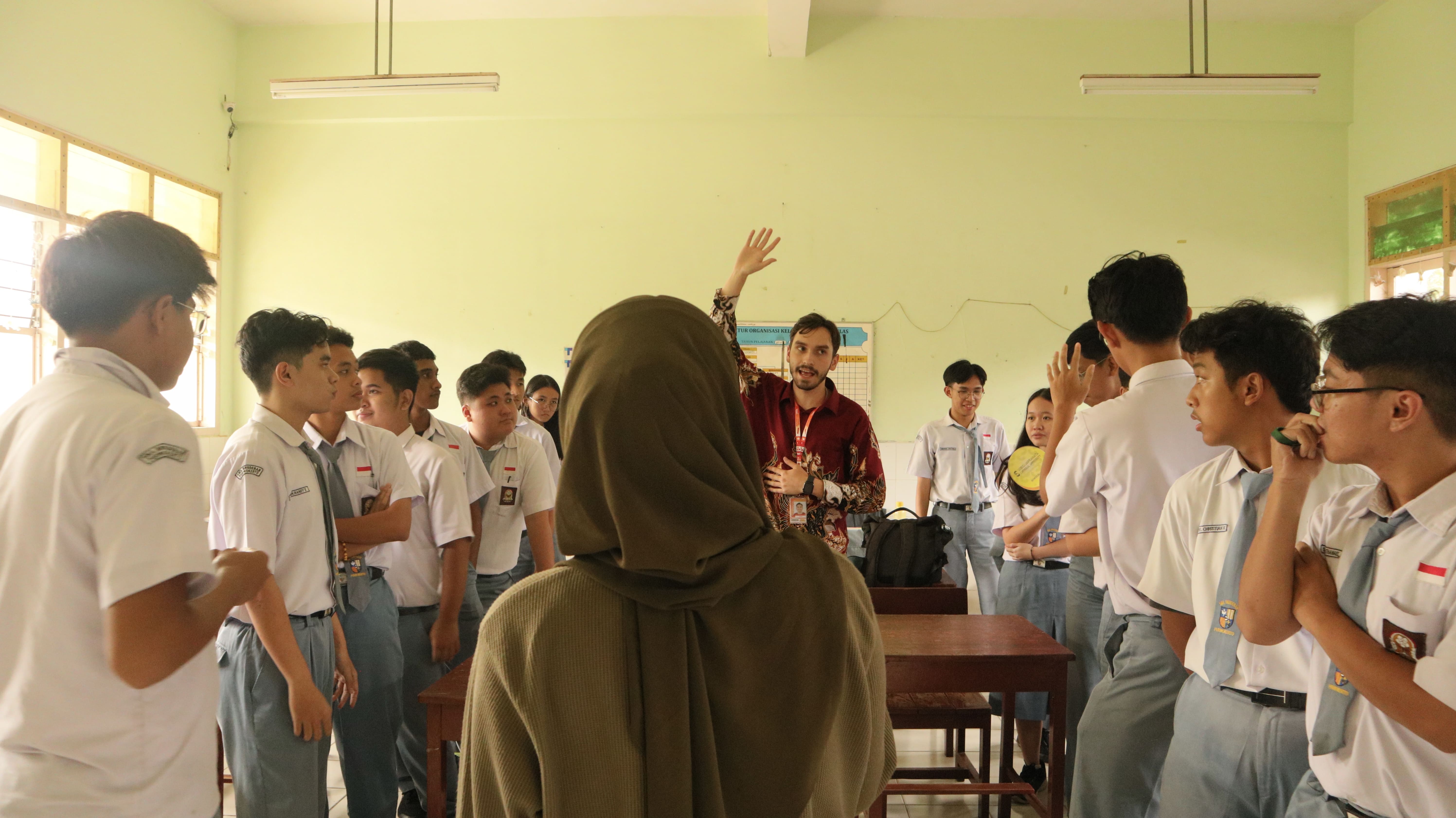 Local Volunteer kali ini membawa tema Global Classroom, yaitu kegiatan pembelajaran yang menghadirkan exchange participants, yaitu Jacob Arthur Keaton Pellowe, Dinithi Sathimathie Karunaratna, Nomin Bayarkhishig, dan Bùi Thị Bích Diệp.