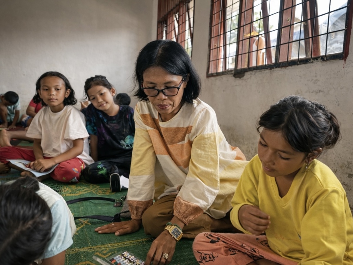 “Dua minggu setelah bencana, kami buat pembelajaran. Memang mereka trauma. Kalau datang hujan, jangankan anak-anak, saya pribadi saja masih was-was,” ujarnya. Di kelas-kelas darurat yang kini menumpang di gedung sekolah lain, Lamtiurma tidak langsung menyuguhkan rumus matematika. Ia menyuguhkan ruang untuk bernapas.