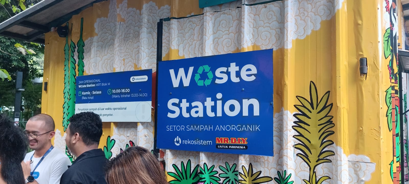 Waste station di Blok M itu berdiri atas inisiatif yang dijalankan lewat kolaborasi antara MR. D.I.Y. Indonesia dan Rekosistem. Di sana, siapa pun dapat membawa sampah anorganik untuk dikumpulkan dan ditukar menjadi saldo dompet digital melalui aplikasi Rekosistem.